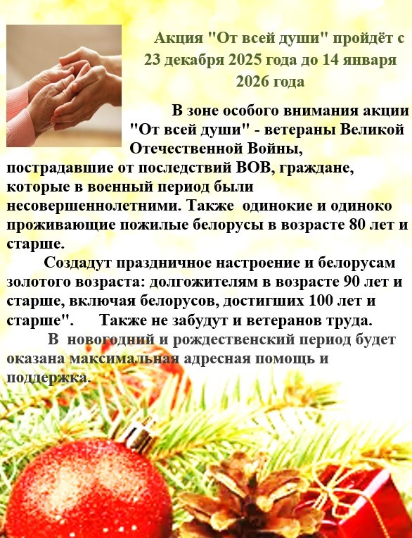 Акция «От всей души» пройдёт с 23 декабря 2025 года до 14 января 2026 года