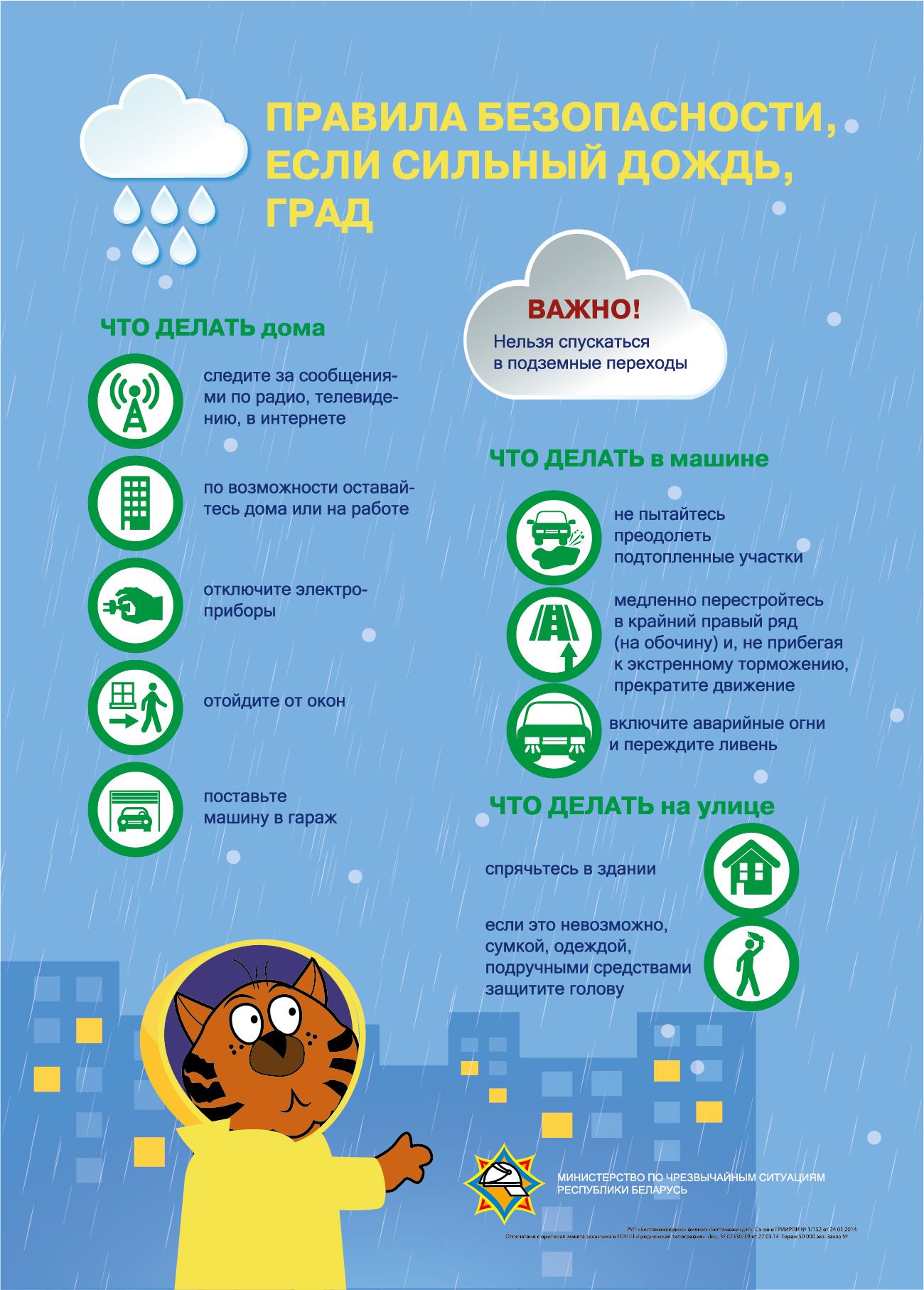 1 При получении информации о выпадении обильных осадков воздержитесь от поездок по городу, по возможности оставайтесь в квартире или на работе. Включите средства проводного и радиовещания.