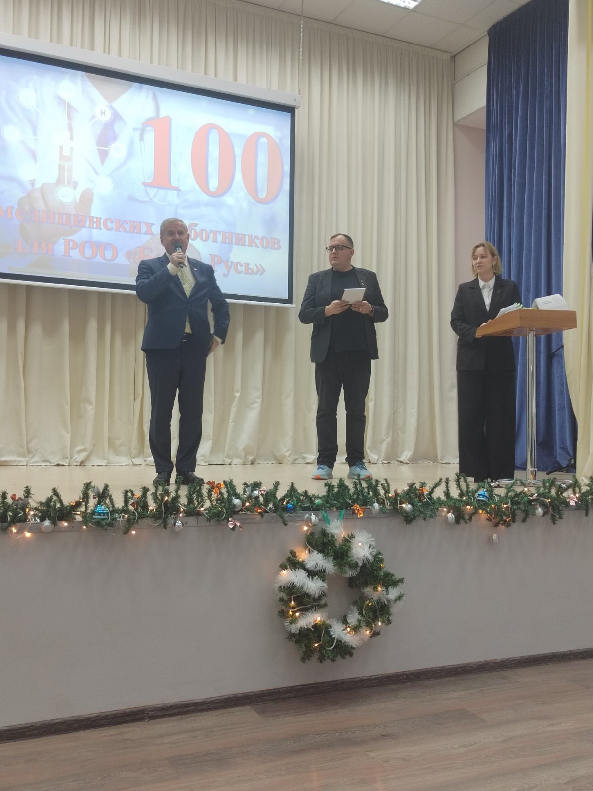 Торжественное мероприятие по вручению членских билетов в рамках акции "100 медицинских работников для «Белой Руси»" Октябрьского района состоялось 27.11.2025 года в учреждении образования "Белорусский государственный медицинский колледж. 6 медицинским работникам поликлиники были вручены членские билеты.