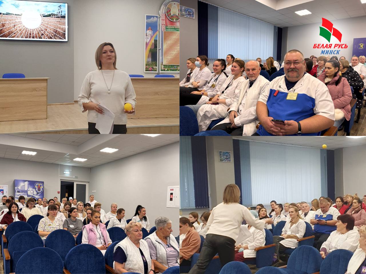 Заместитель председателя Октябрьской районной организации «Белая Русь» Татьяна Сенькевич рассказала медикам о вкладе Президента Республики Беларусь в развитие нашей страны и, конечно, о том, чем мы можем гордиться.